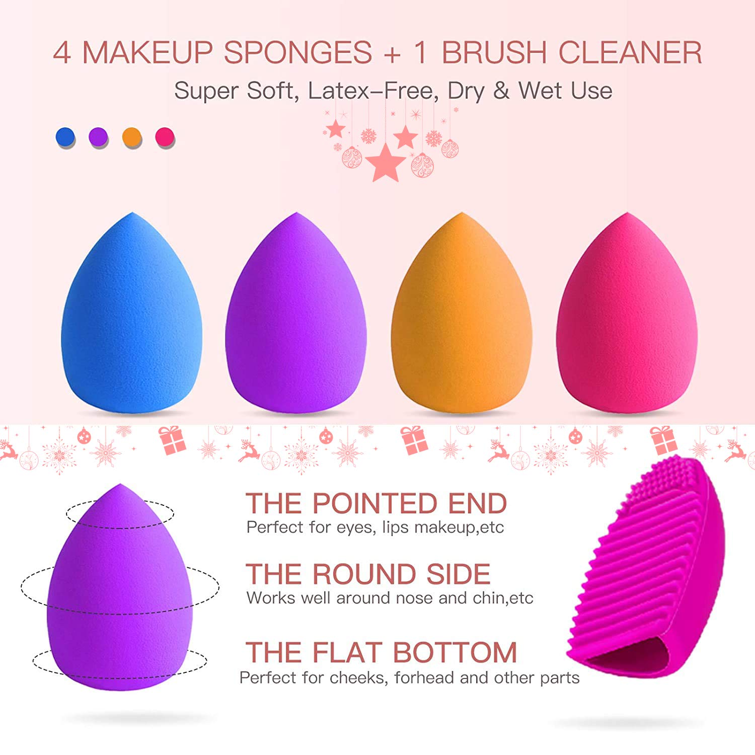 - Includes 18pcs makeup Brushes & 4pcs beauty blender sponge & 1 brush Cleaner mat.